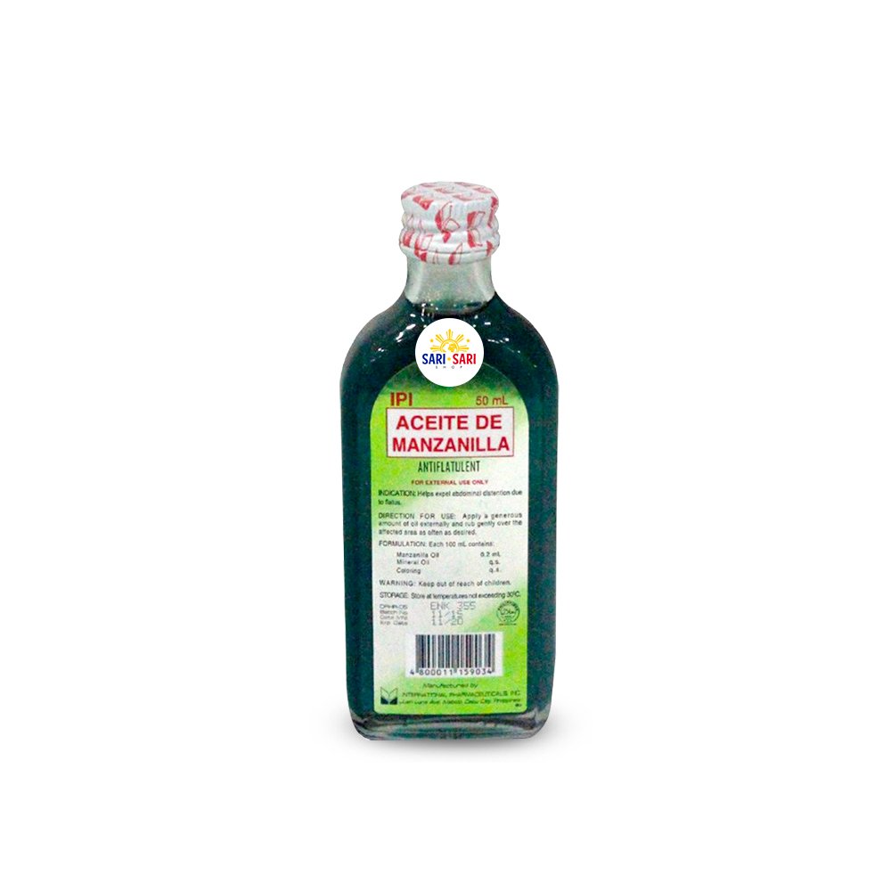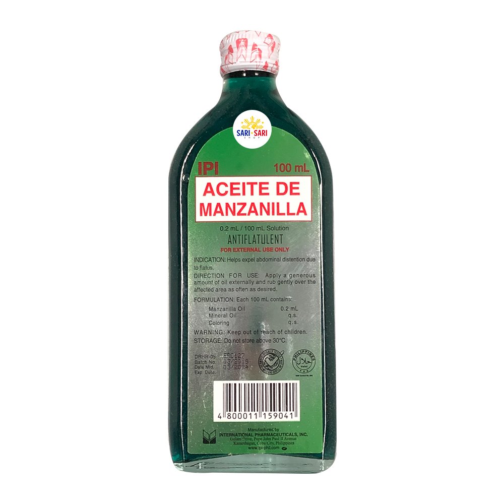 IPI Aceite de Manzanilla is every mother’s choice in helping expel abdominal discomfort on their babies due to the accumulation of gas or colic, locally known as ‘kabag’. It can also be used for baby’s body discomfort.