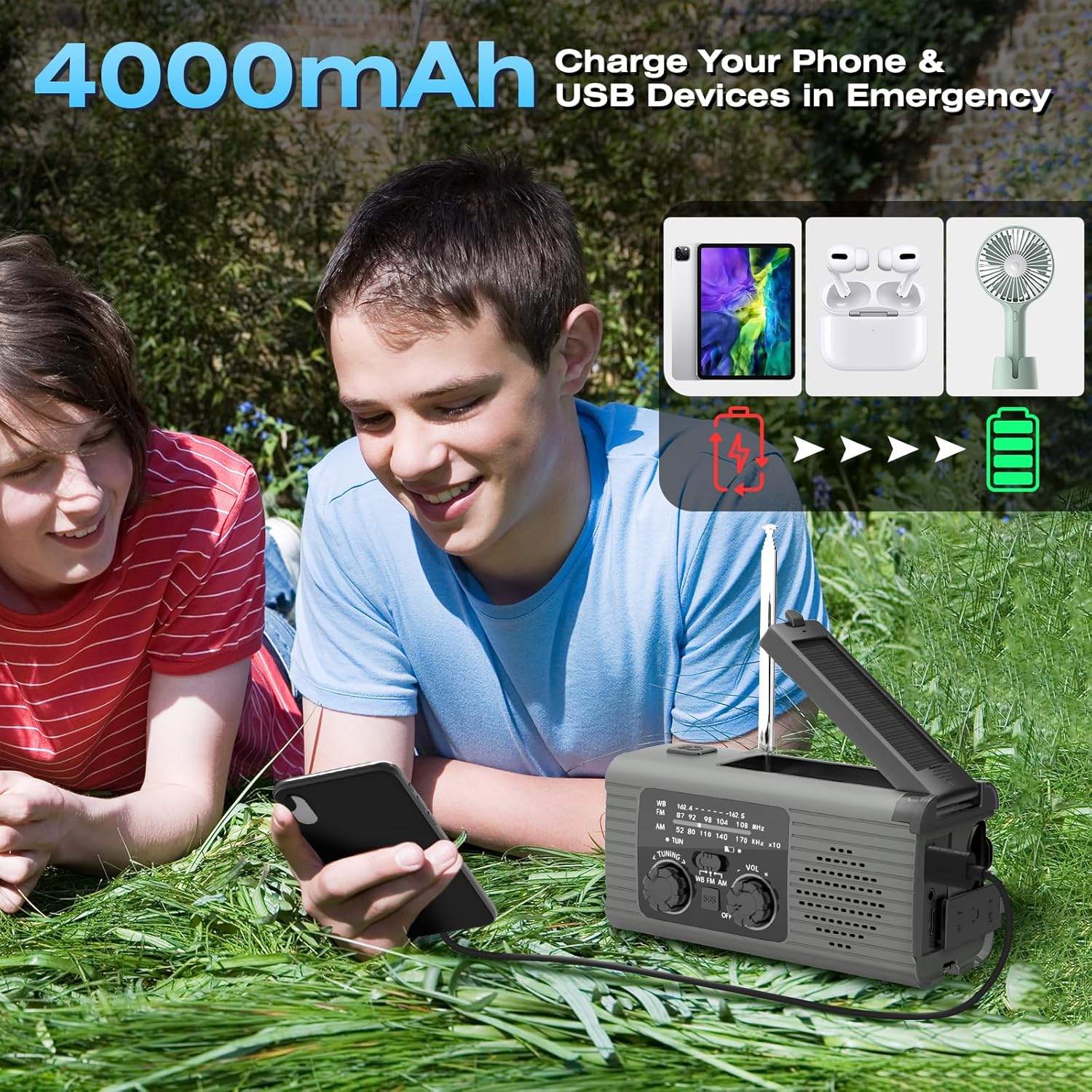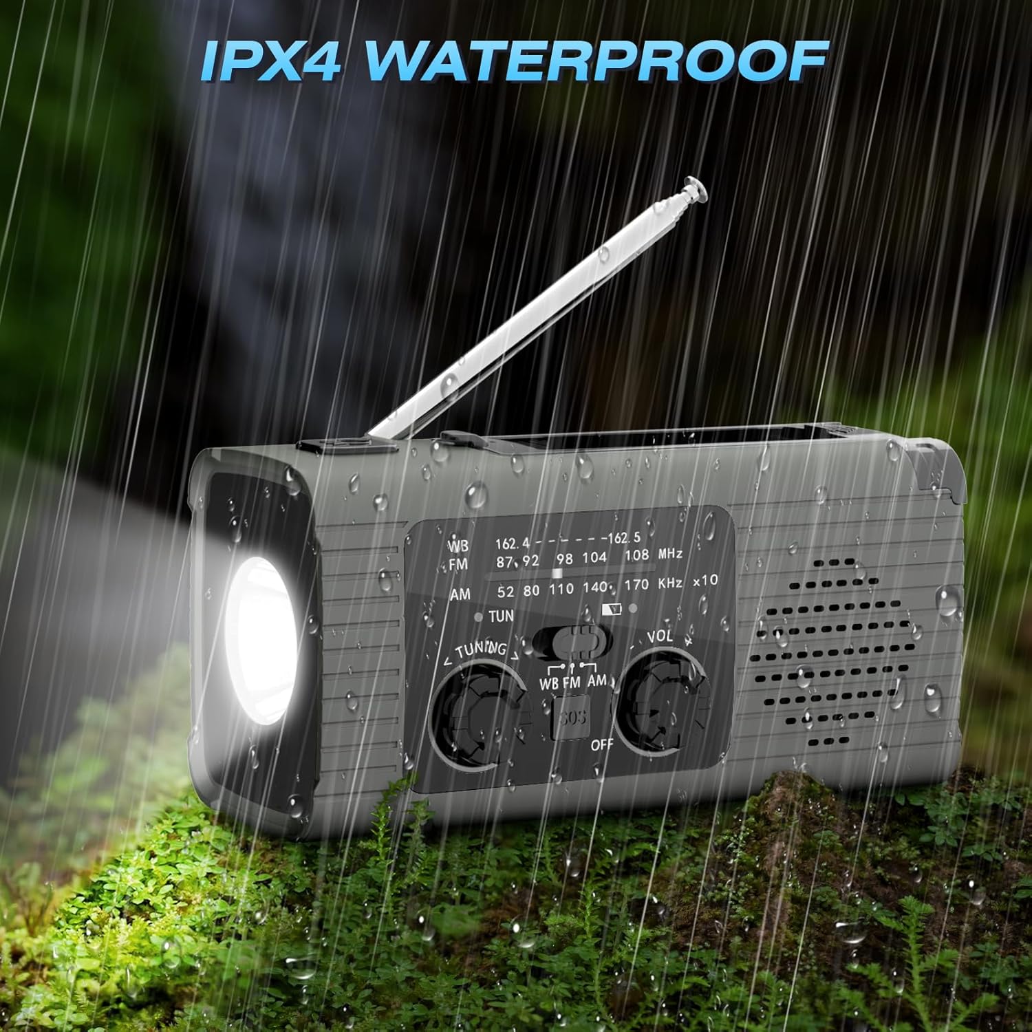 - Multiple Power Options: Stay powered with hand-crank, solar panel, or rechargeable battery for uninterrupted functionality.