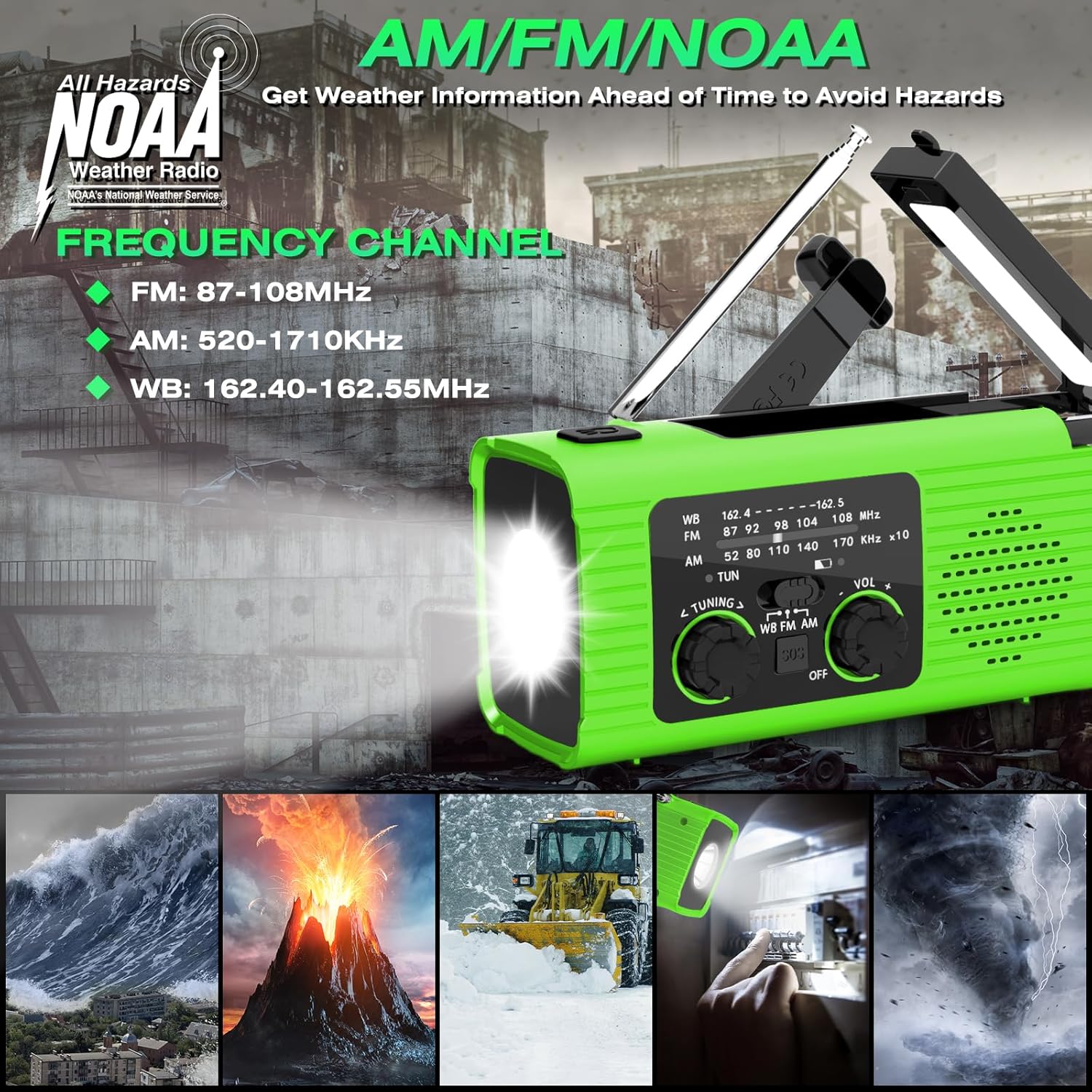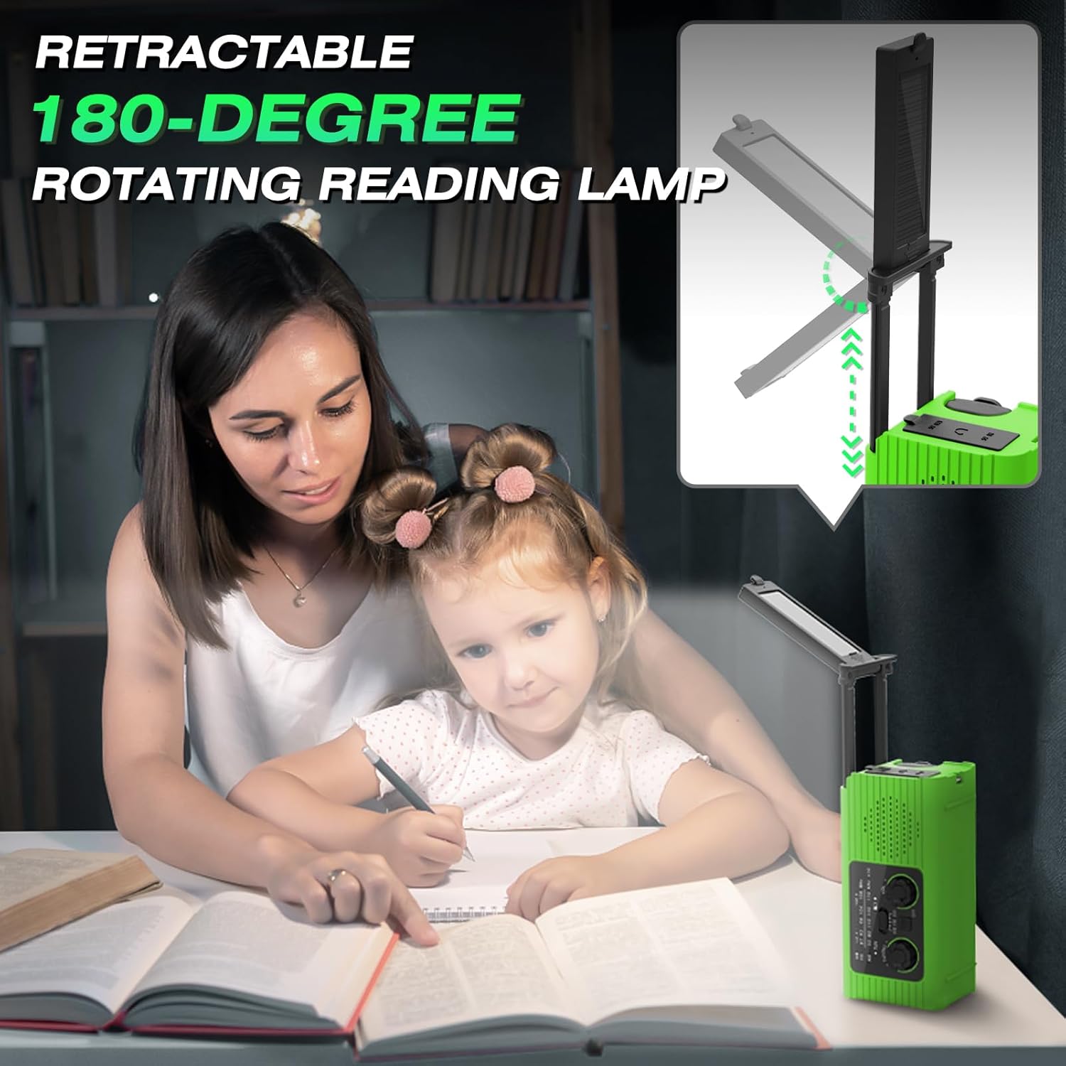 - Multiple Power Options: Stay powered with hand-crank, solar panel, or rechargeable battery for uninterrupted functionality.