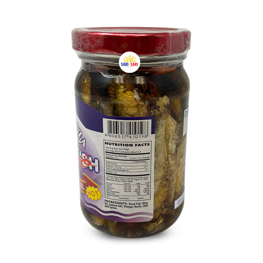 Zaragoza Tuyo in Corn Oil Hot 220g is a delicious and authentic Spanish snack. Made from the finest ingredients, these crunchy, flavorful tidbits are sure to tantalize your taste buds. They are deep-fried in corn oil, giving them a golden color and a delectable crunch. Perfect as a side dish or snack, Zaragoza Tuyo in Corn Oil Hot at 220g offers a perfect balance of flavor and texture. The perfect combination of spices and seasonings creates a unique and irresistible flavor that will have you coming back for more. Enjoy the authentic taste of Spain in your own home with Zaragoza Tuyo in Corn Oil Hot at 220g.